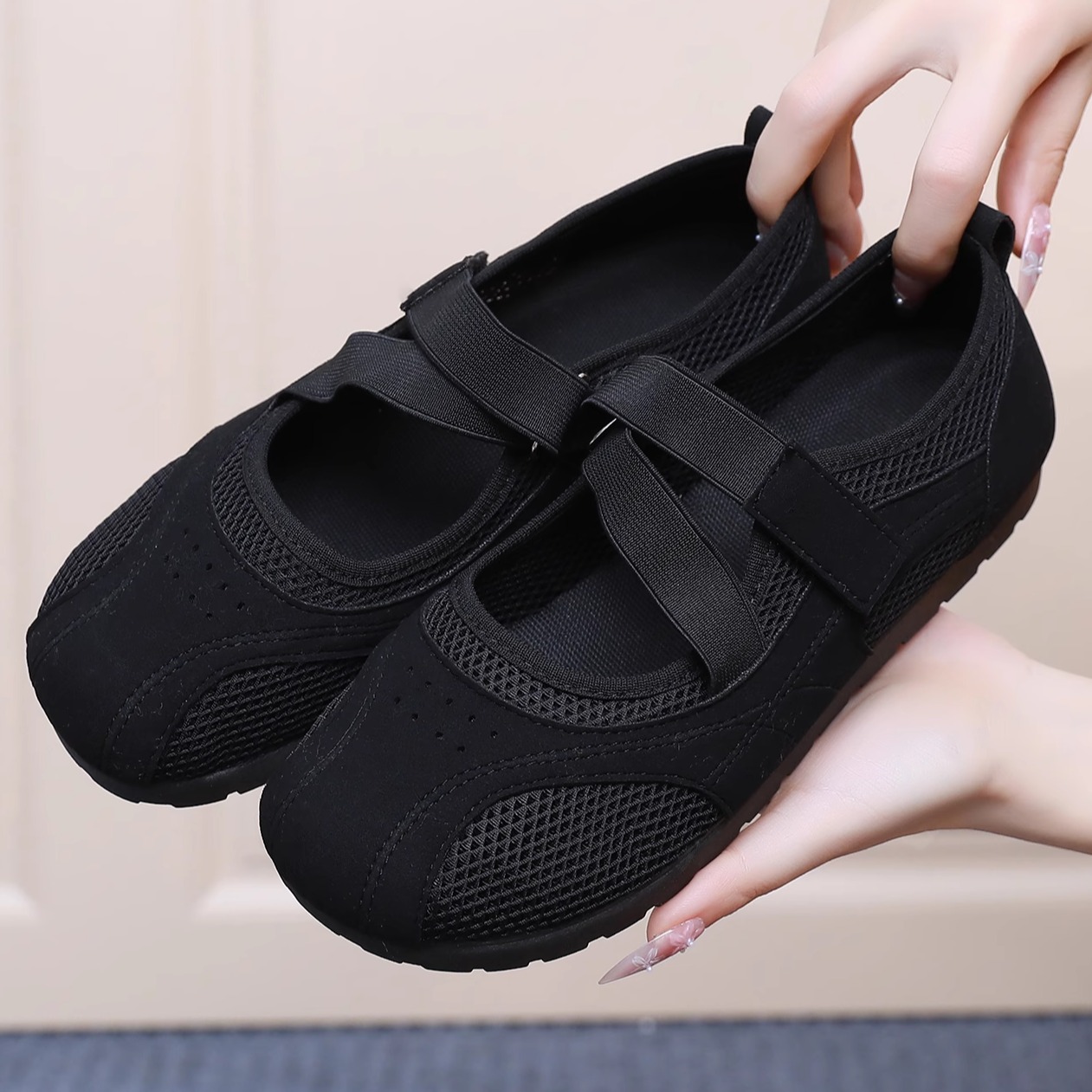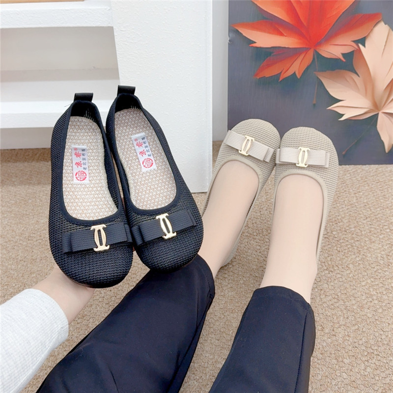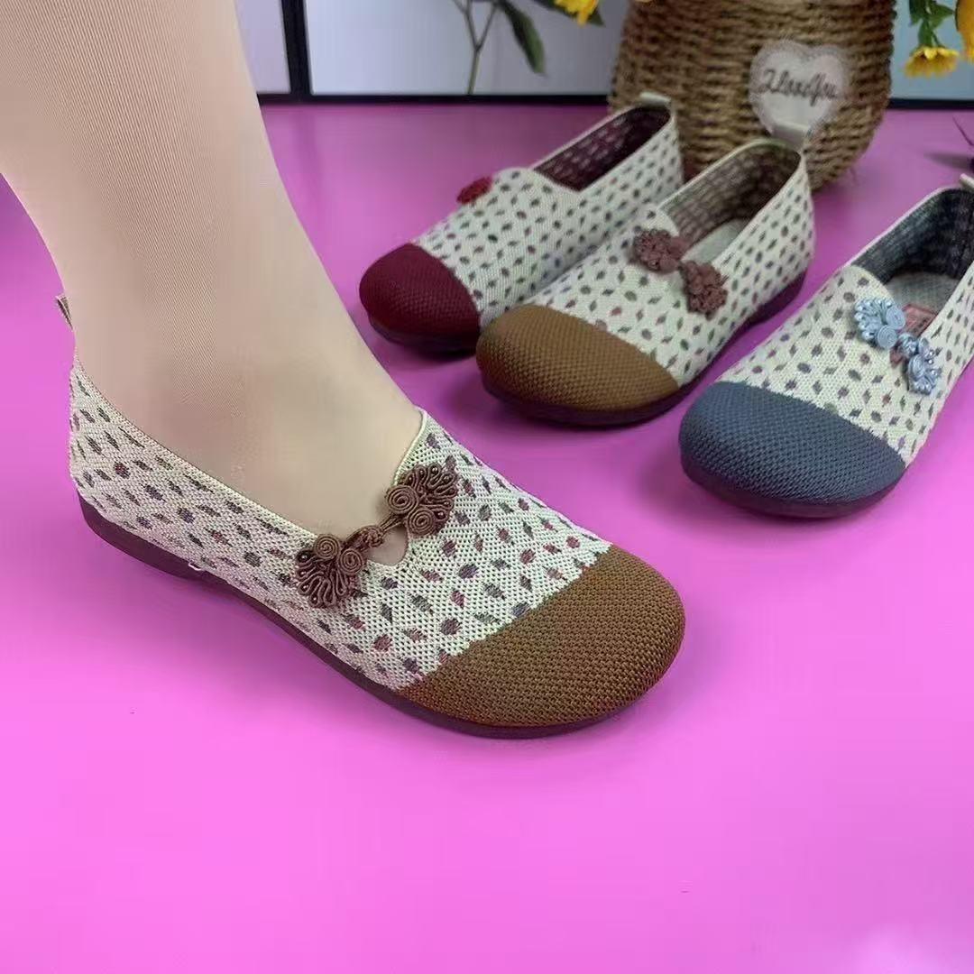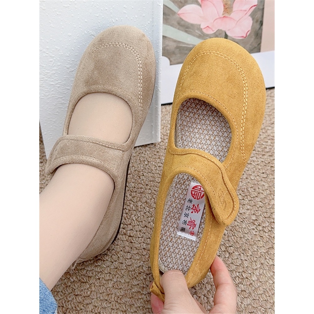女性用の新しい古い北京布靴、ファッショナブルなバレエスタイルのマザーズシューズ、快適でシンプルなウォーキングシューズ、メッシュ通気性のある怠惰な靴