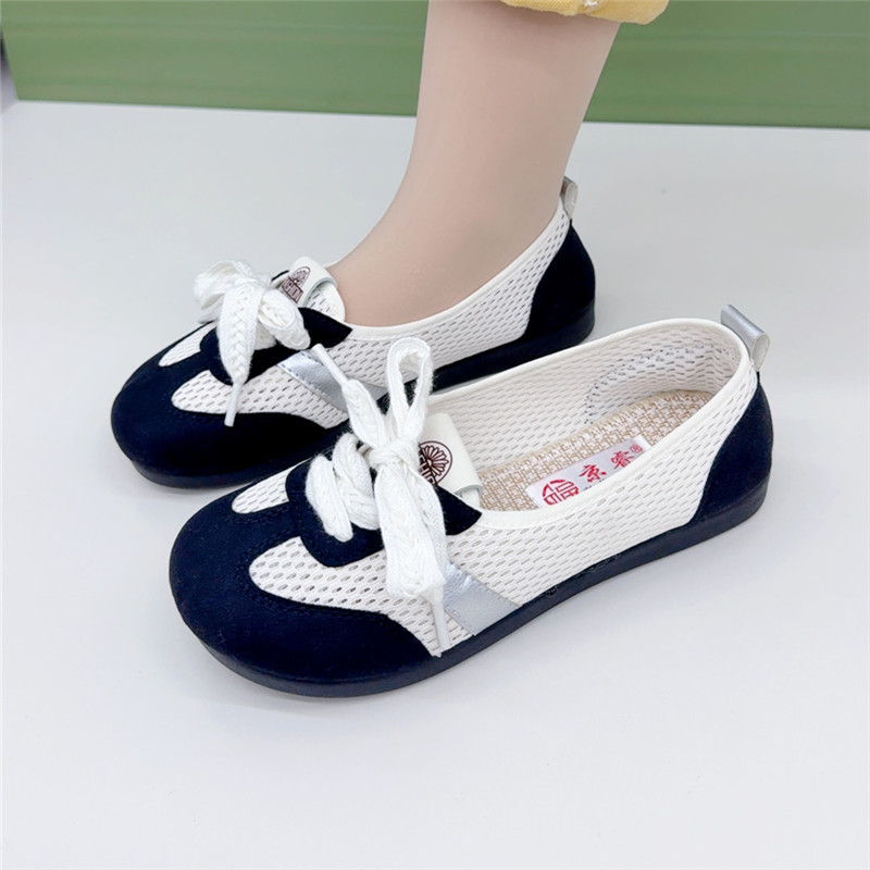 古い北京布靴、レディースシングルシューズ、ファッションカジュアルシューズ、中空メッシュ道徳訓練靴、浅い口の平底フォレスト・ガンプシューズ