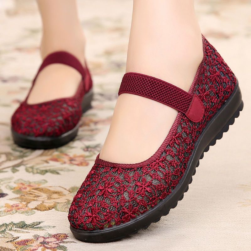 中高年女性の夏の通気性メッシュカジュアルマザーズシューズ、滑り止めソフトソールシューズ、古い北京布靴