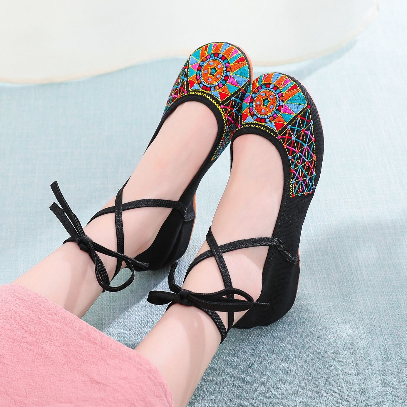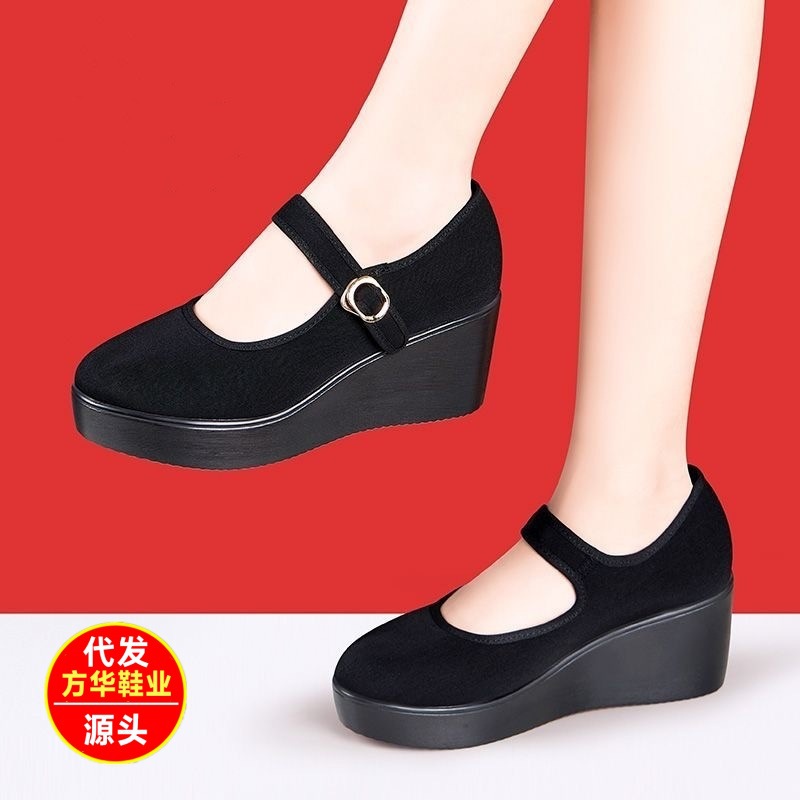ダンスシューズ、カジュアルで多用途なウェッジヒール、厚底の古い北京布靴、快適で柔らかい底のマザーズシューズ、フラットワークシューズ