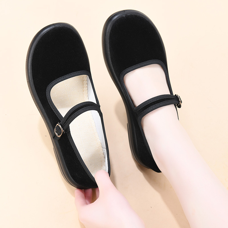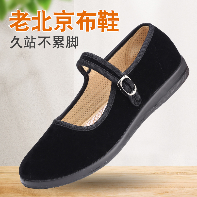 古い北京布靴女性のための 2025 新しい平底ソフトソール快適な作業靴ホテル作業ノンスリップダンスマザーシューズ