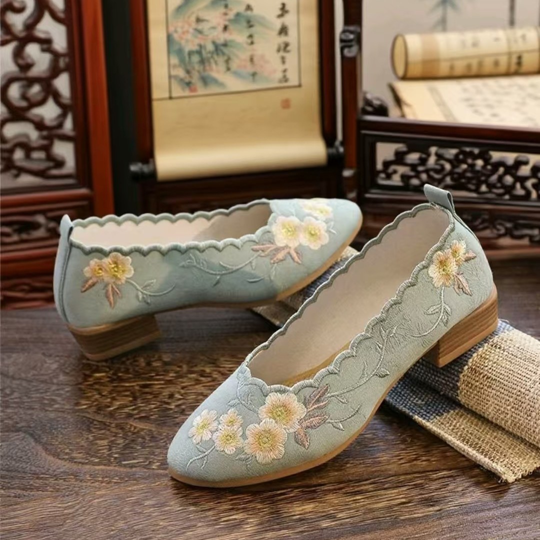 刺繍布靴女性靴レトロ広場舞靴刺繍靴浅口低ヒール春秋女性靴