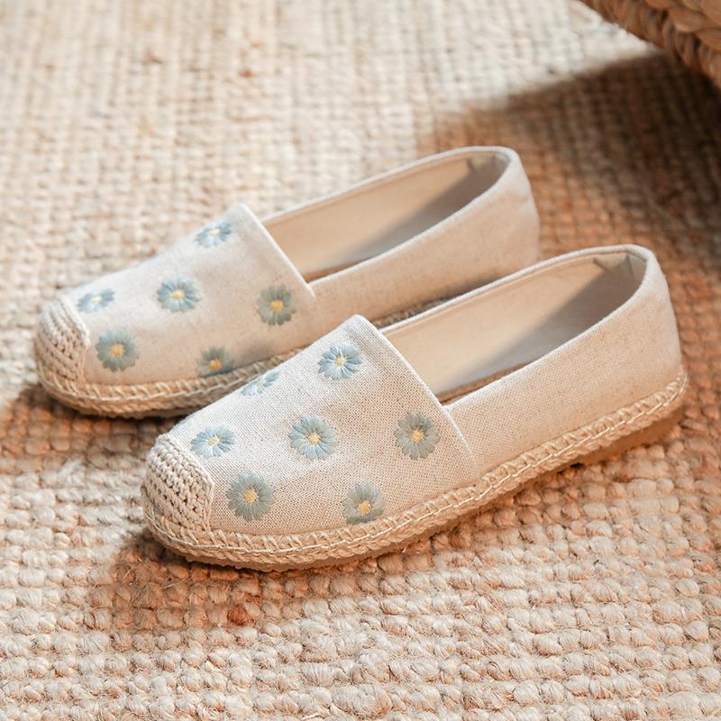クロスボーダー漁師の靴、柔らかい靴底、超柔らかい古い北京布靴、女性用手作りリネン平底カジュアル通気性スリッポン刺繍