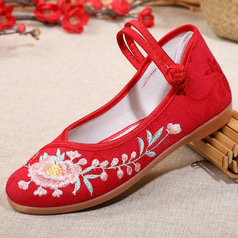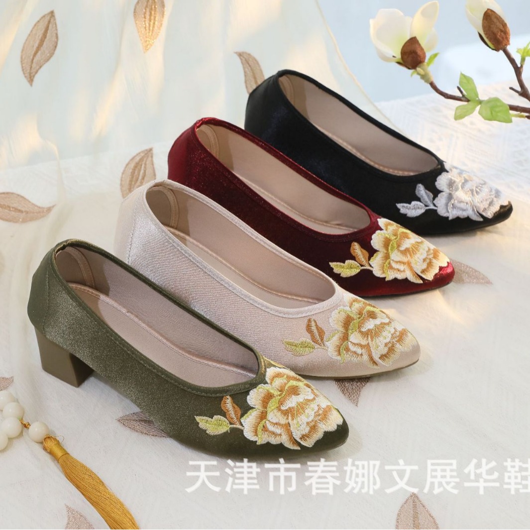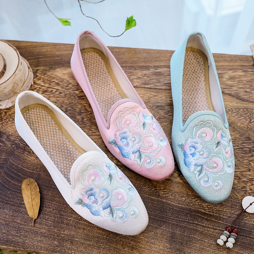 コクリコ美人 -- 2020年日常の尖った頭と刺繍の上品な中国風刺繍の布靴の女性靴