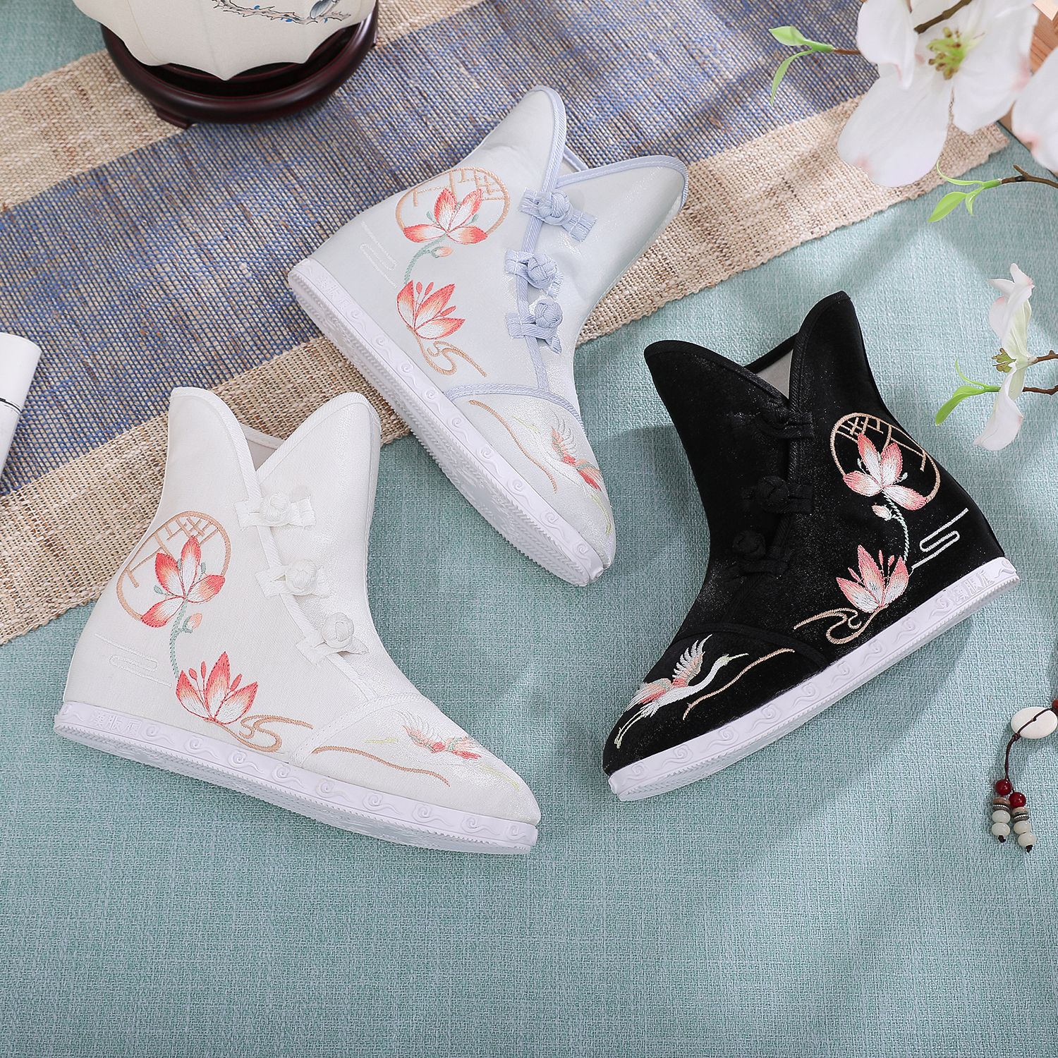 妙楽内は7センチ高くなった漢服靴刺繍ショートブーツ民族風刺繍布靴ブーツ漢服靴