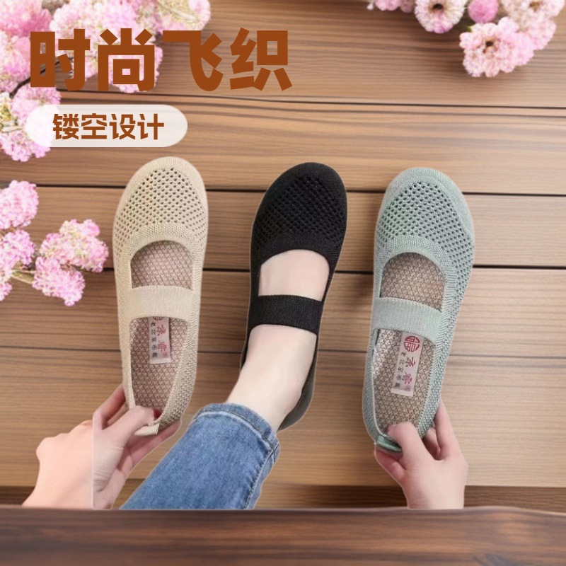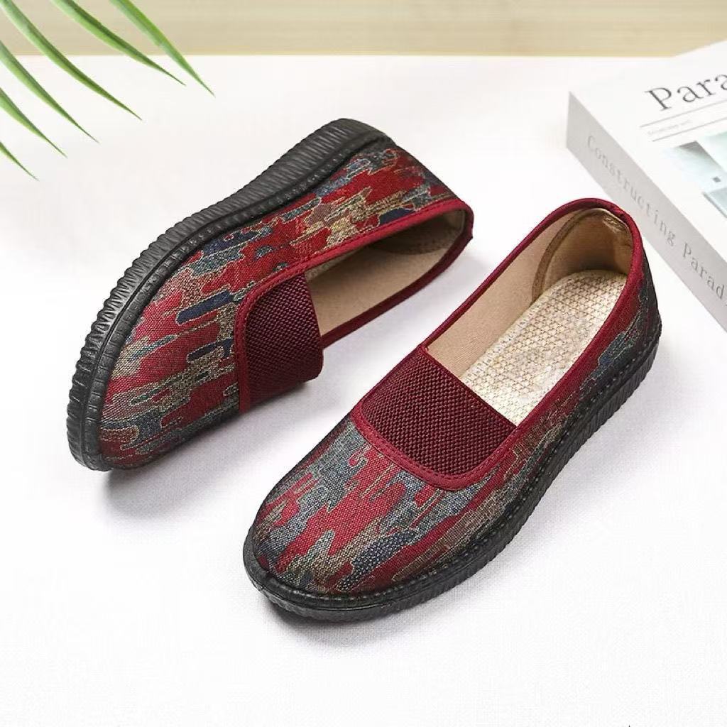 春夏の女性用布靴、通気性抜群、お母さんや奥様にぴったりのフラットシューズ、スリッポンタイプ、歩きやすい浅履き、フラットヒール