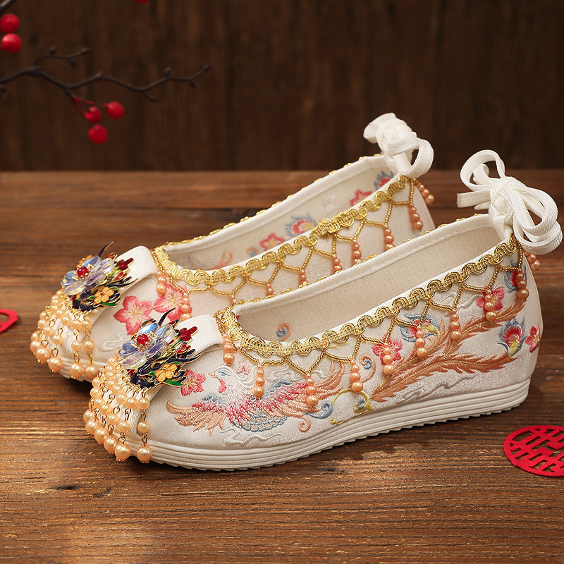 【鳳来儀】春秋新作流蘇漢服靴古風刺繍靴新婦秀禾結婚靴中国式で高くなりました。