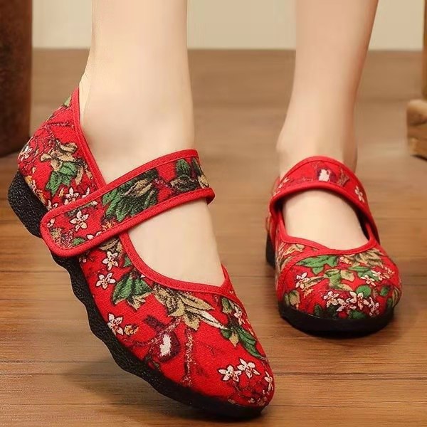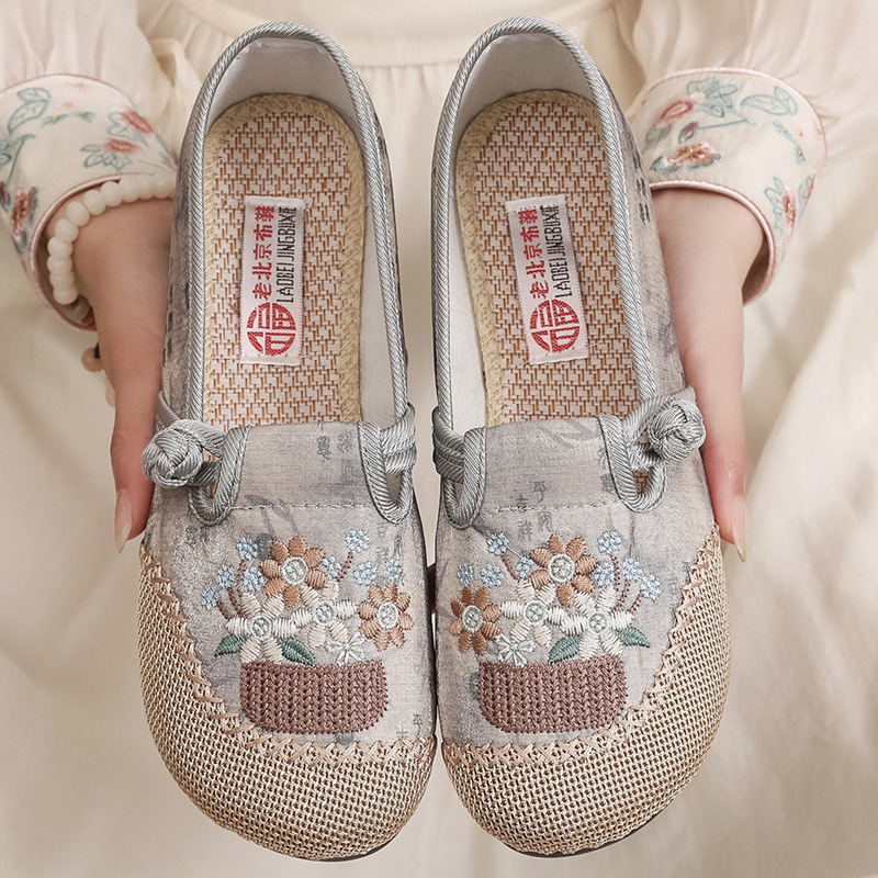 新中国風老北京布靴女性通気性民族風刺繍靴国風漁師靴中高年快適母靴
