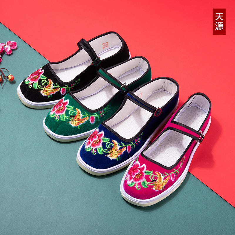 【トップボタン】中国風レトロ刺繍布靴結婚靴民族風牛筋底広場ダンス靴