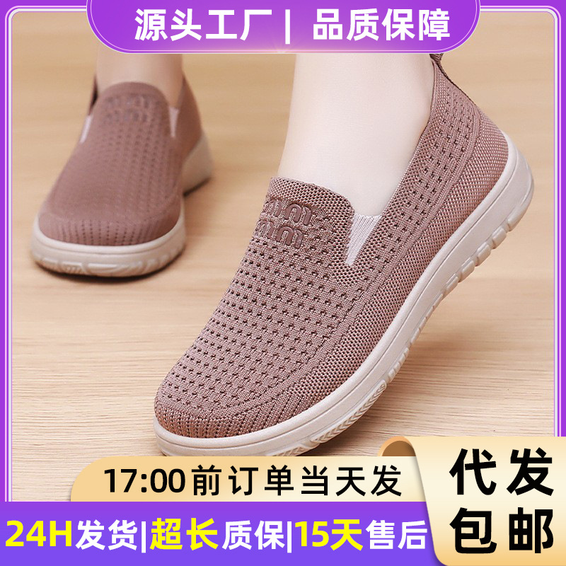 女性の靴は柔らかい靴底で足が疲れません、夏の新しい古い北京布靴、中高年の母親の靴、スリッポンカジュアルシューズ