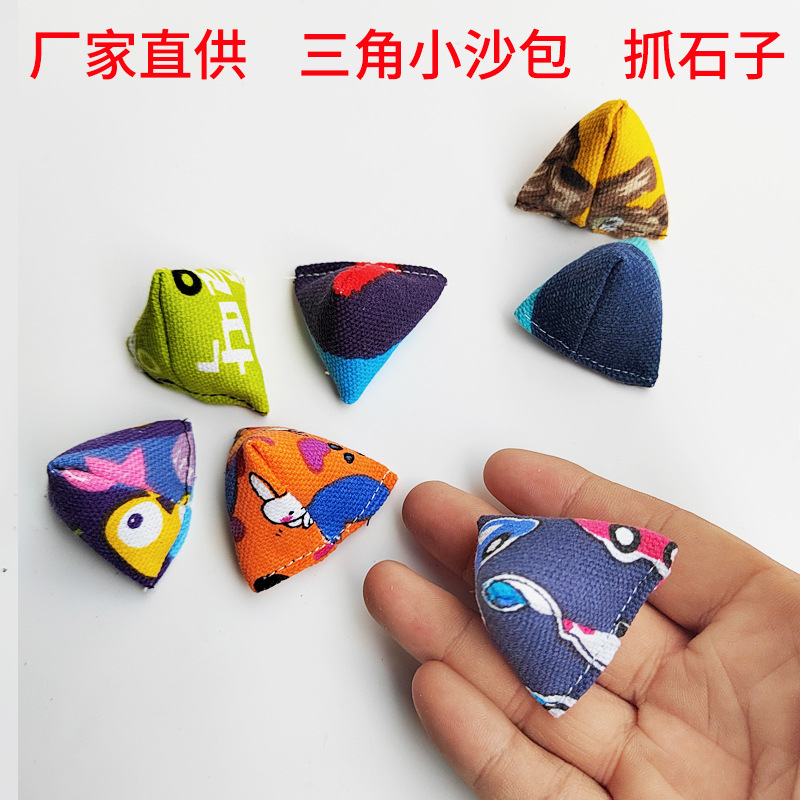 三角サンドバッグ子供の手で小さい三角サンドバッグ幼稚園の小学生を捕まえて砂袋をなくして石を投げます。