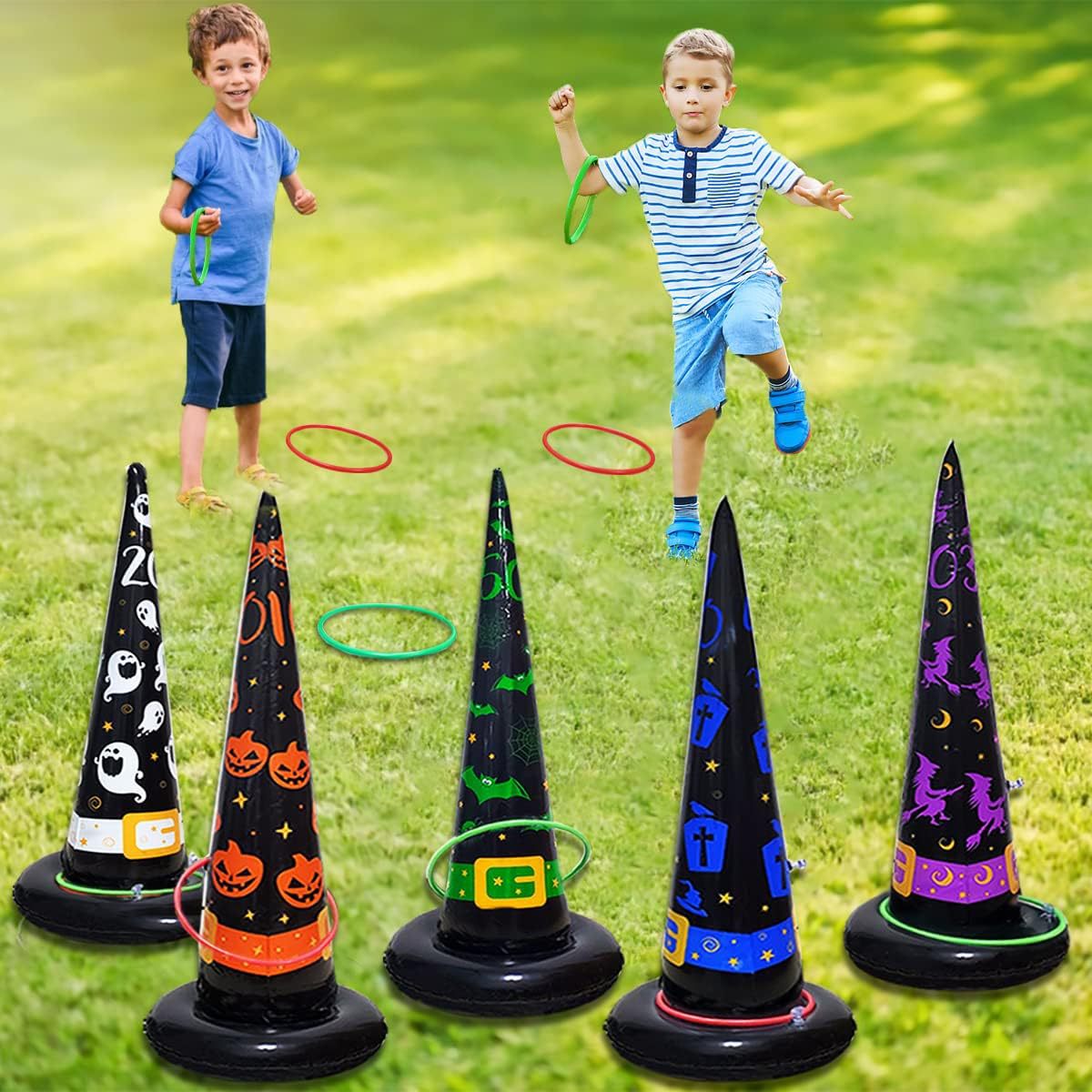 ハロウィン用インフレータブル魔術師帽子リング、PVC製子供用投げ帽子リングゲーム、投げ輪投げおもちゃ