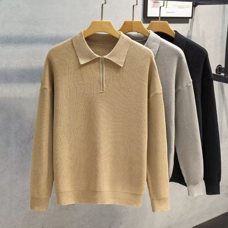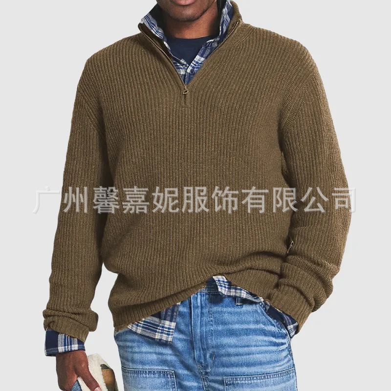 アマゾン独立サイト2025秋冬新作 欧米向けメンズビジネスカジュアルルーズジップスタンドカラーセーター
