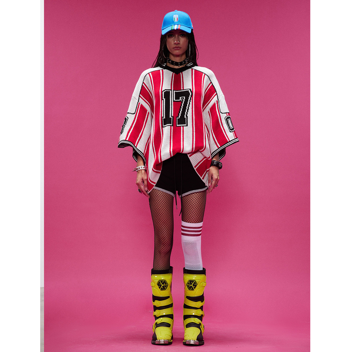 Jiayiku 紳士服 2025 新しいアメリカのトレンディなブランド野球スポーツセーター半袖ストライプカラーブロック V ネックセーター