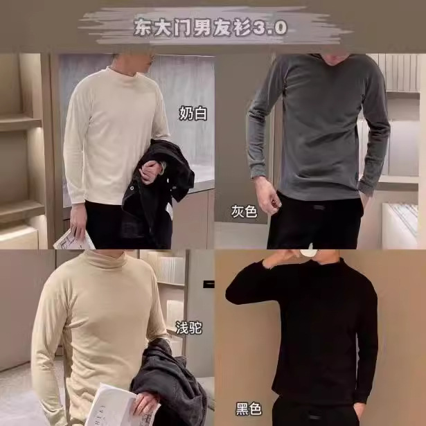 東大門男性のボトムシャツ3.0秋冬韓国版の半高襟の厚い毛を磨いて保温します。