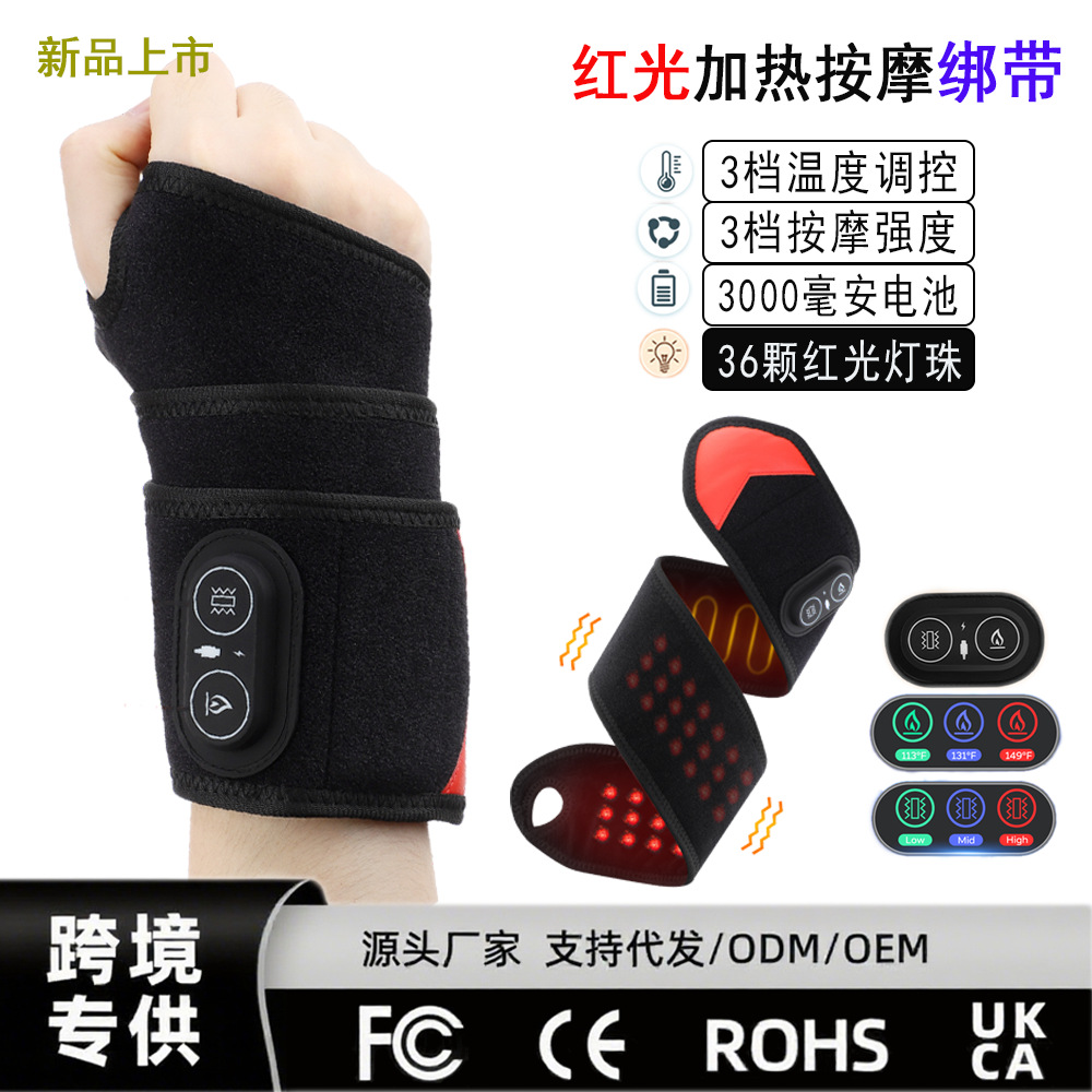 クロスボーダー赤色光加熱リストバンド、36個のLEDライトビーズ、660/850nm加熱振動マッサージ光線療法リストバンド