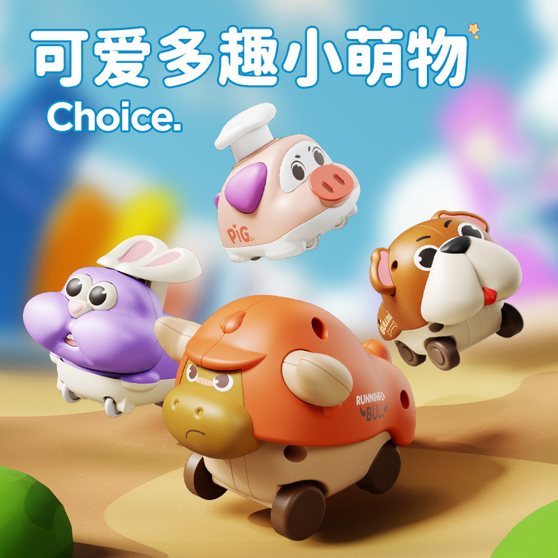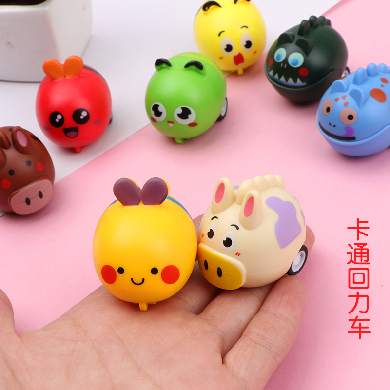 漫画の創意回力車のおもちゃの車の露店は子供が転んで力の動物の赤ちゃんの益智の小さい車を返します。