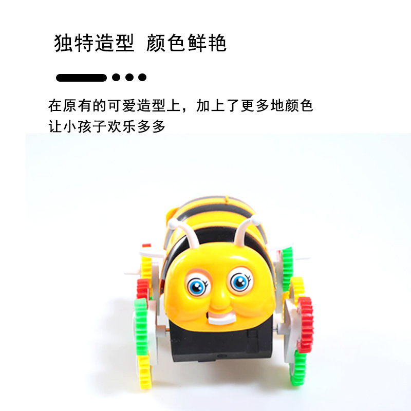 ミツバチが転覆した車は、ミツバチの電気自動車のおもちゃを押して、新型の特技車の露店の新商品を卸売りします。