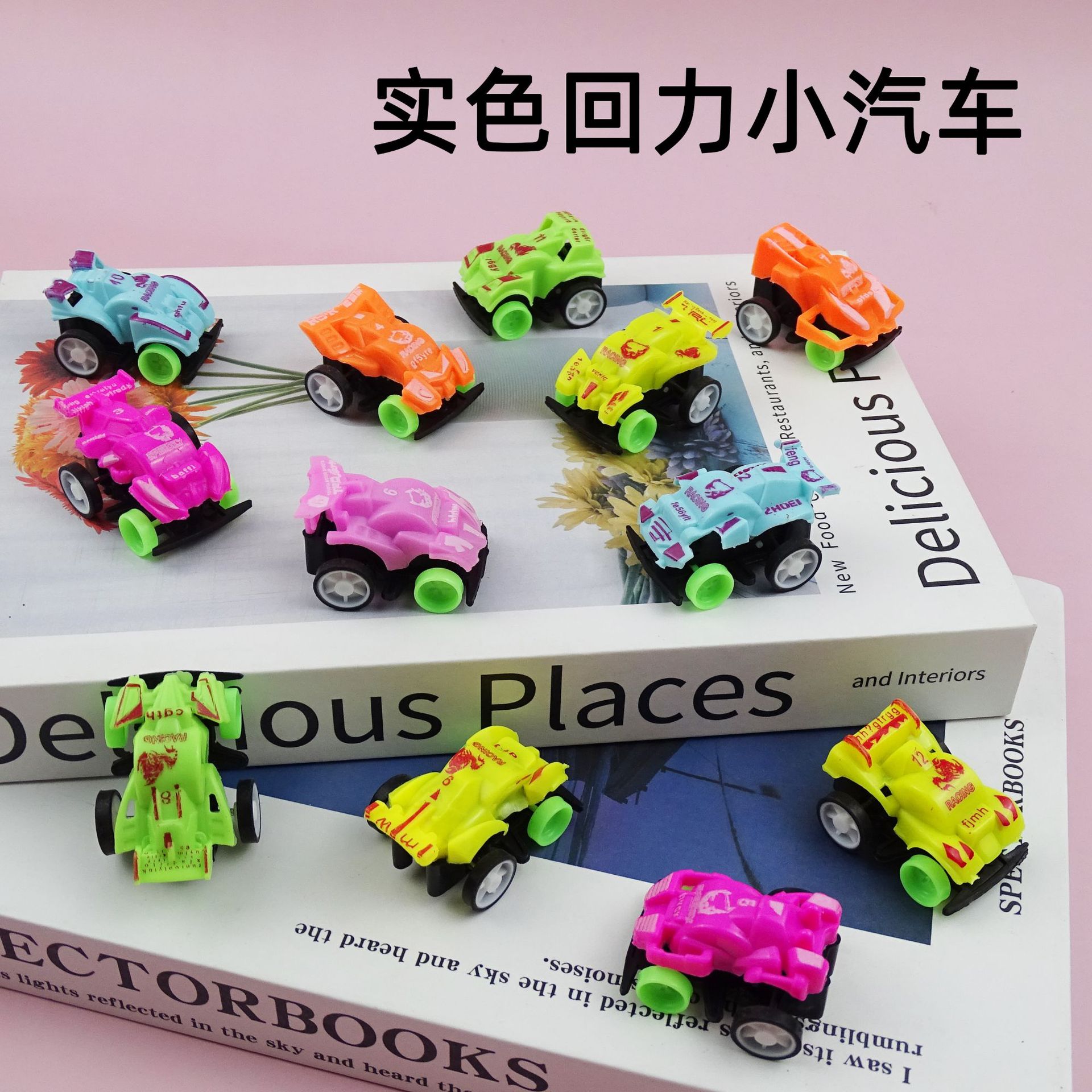 子供の小さいおもちゃの漫画の実色の小さい自動車は力のレースの幼稚園の小さい贈り物のキャンディーのおもちゃを返します。