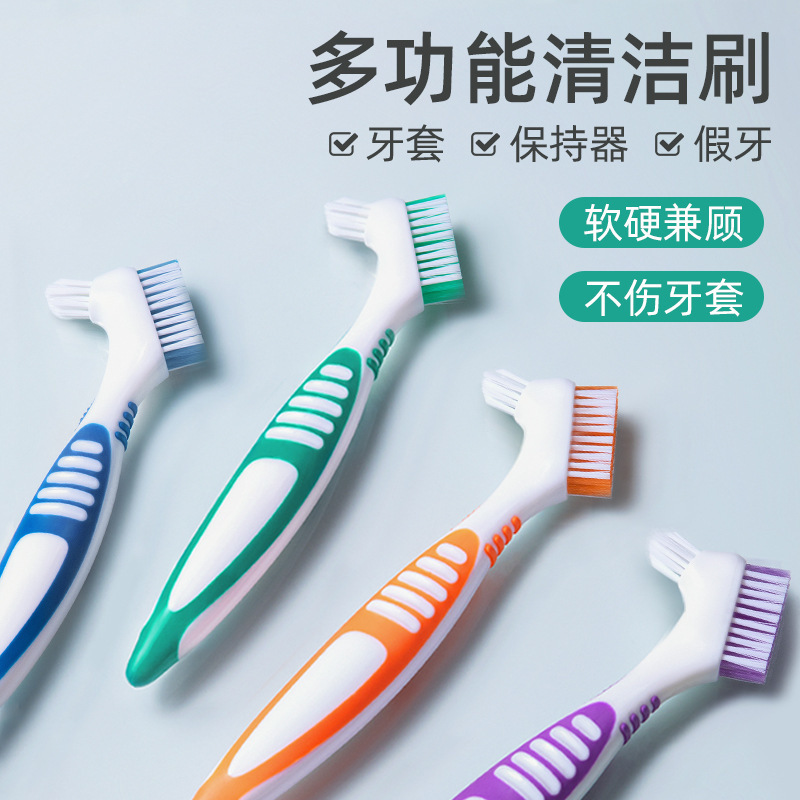 入れ歯歯ブラシステルス歯カバー清潔ブラシ矯正ホルダーブラシ義歯ブラシダブルヘッド汚れ除去老人歯ブラシ外国貿易