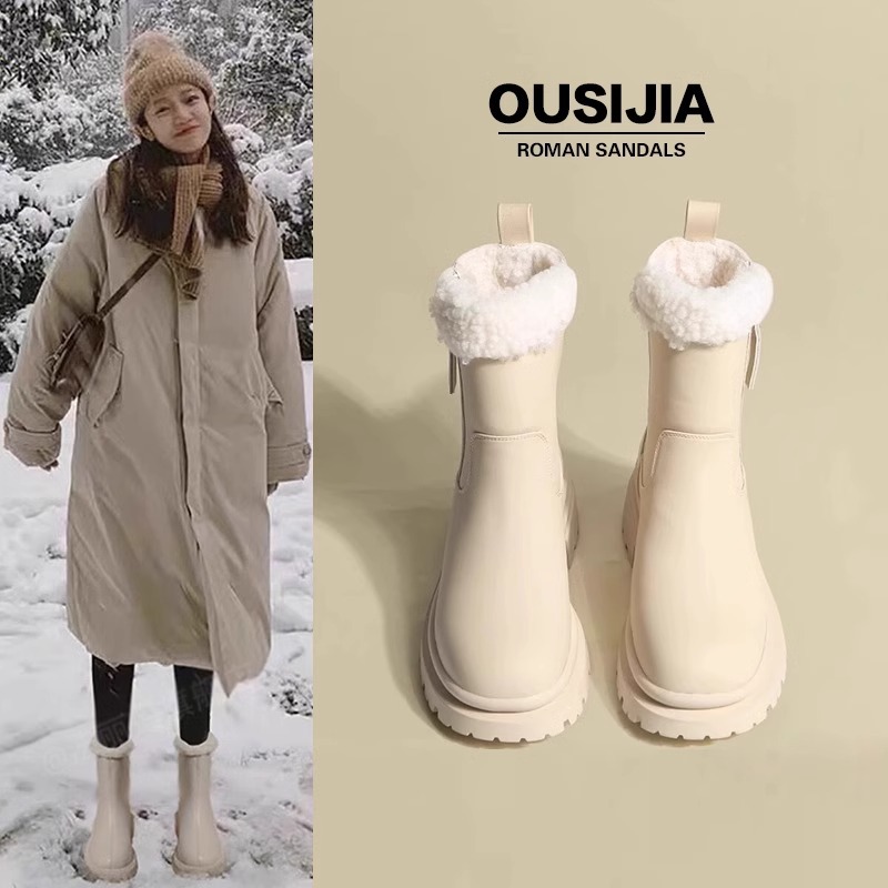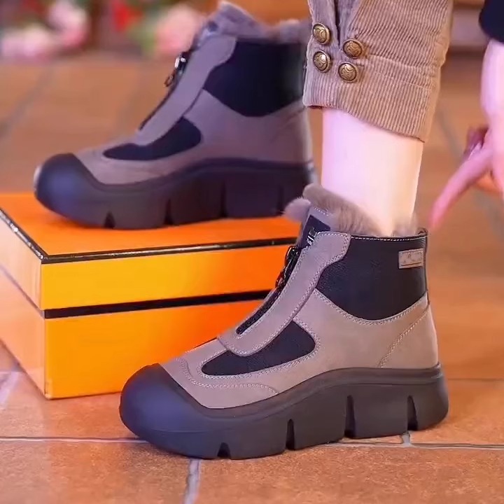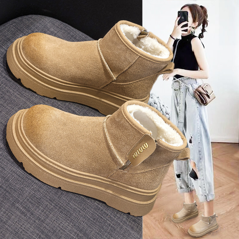 2025年冬新作万能スノーブーツ滑り止め保温綿靴カジュアルショートブーツ裏起毛厚底婦人靴卸売
