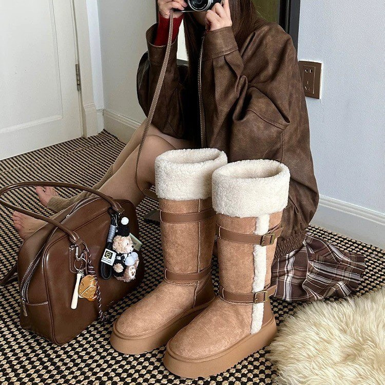 2025秋冬新款羊皮毛一体保暖雪地靴大长筒骑士靴女羊毛东北大棉鞋