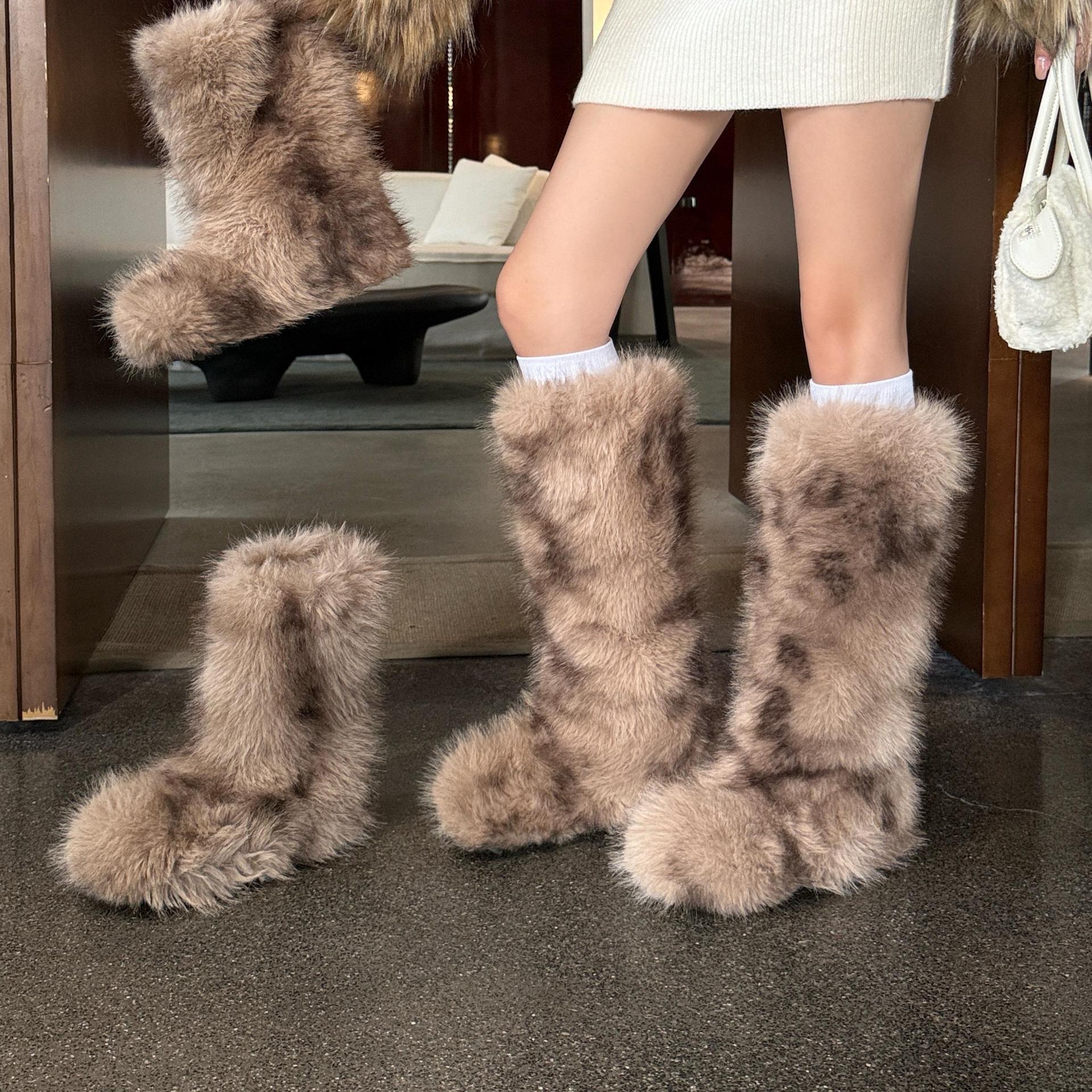TP-Y012 クロスボーダー同スタイル 2025 冬ヨーロッパとアメリカの毛皮のようなムーンシューズ スノーブーツ ファッション スペースブーツ 女性用
