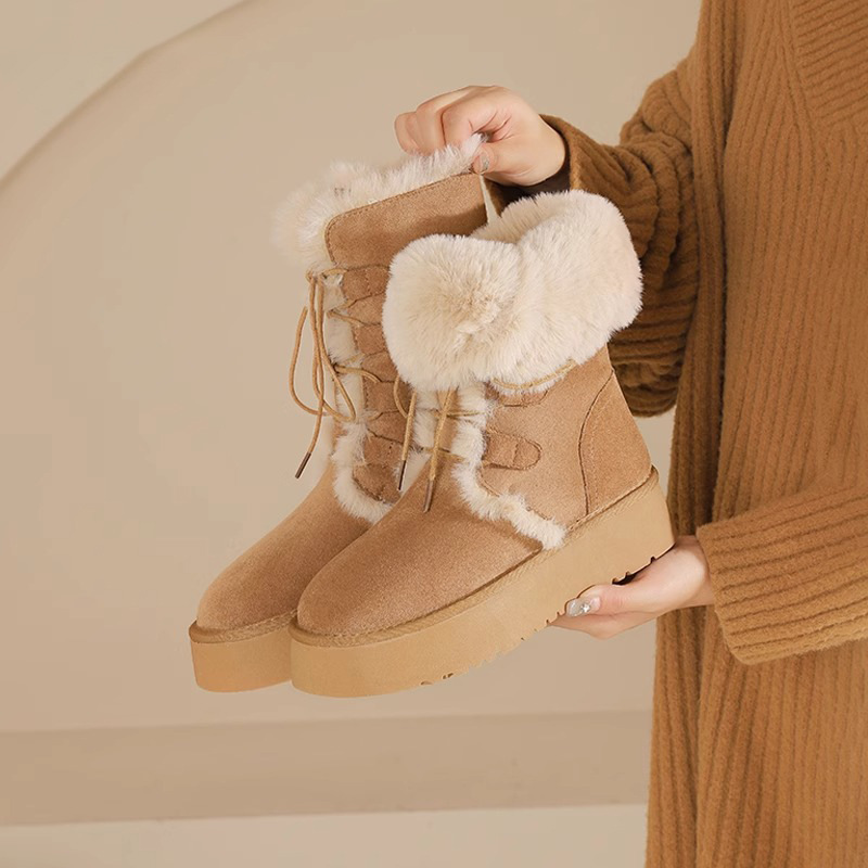 2025年冬新作 厚手フリース600g入り 防寒 ハイカット 多用途 ファー付きレディースシューズ 韓国風トレンド