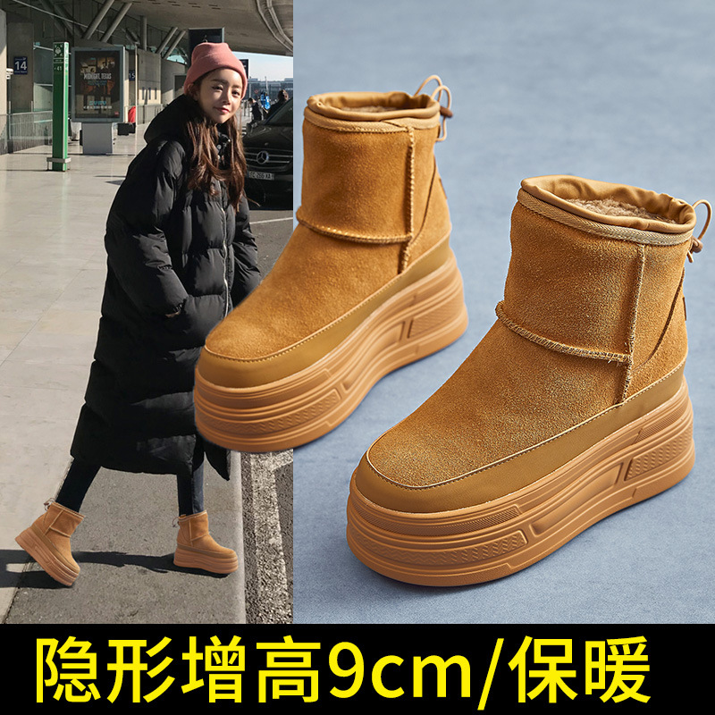 2025年冬新作 スノーブーツ 厚手フリース裏地付き おしゃれで暖かい ミドル丈 ネット流行 厚底身長アップ綿靴