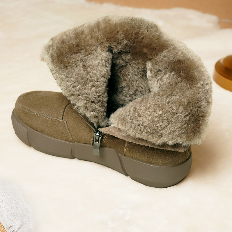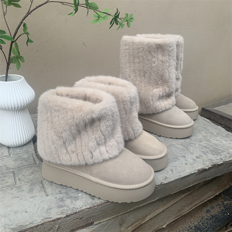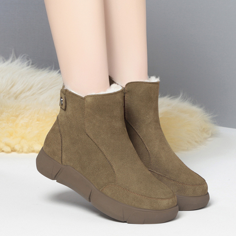 2023年冬の新型雪地ブーツ女性毛皮一体ベルベット母ショートブーツ柔らかい皮保温ウール綿ブーツ