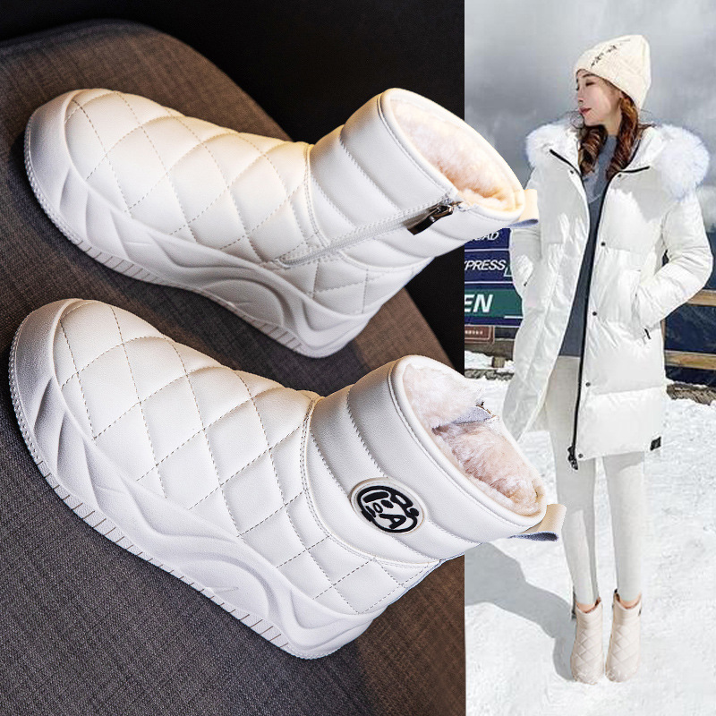 新しいフロントジッパー防水スノーブーツ女性の大きいサイズのソフト革面防寒保温綿ブーツ冬の屋外カジュアル綿靴