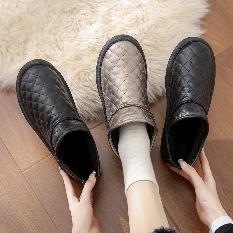 妈妈棉鞋女广场舞鞋子冬季短靴中年保暖加绒防滑舒适中老年人皮鞋
