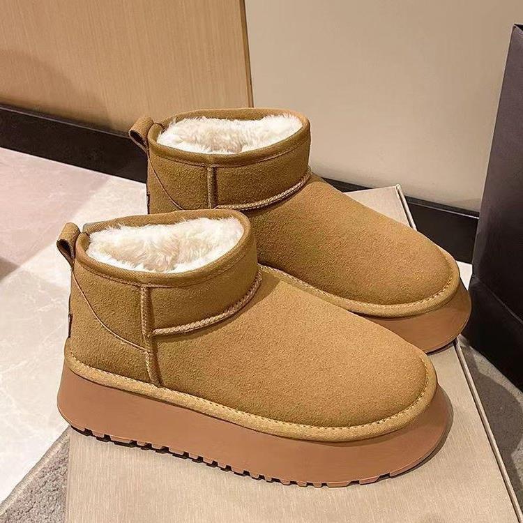 厚底滑り止めカジュアルレディースシューズ人気の多用途ファッションプラスベルベット暖かいショートブーツ2024秋冬新作綿靴
