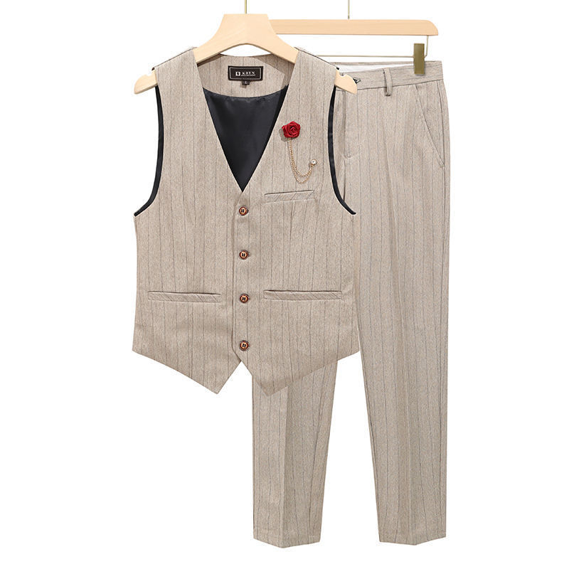 卸売り新商品男性カジュアルスーツのベストパンツ2点セット