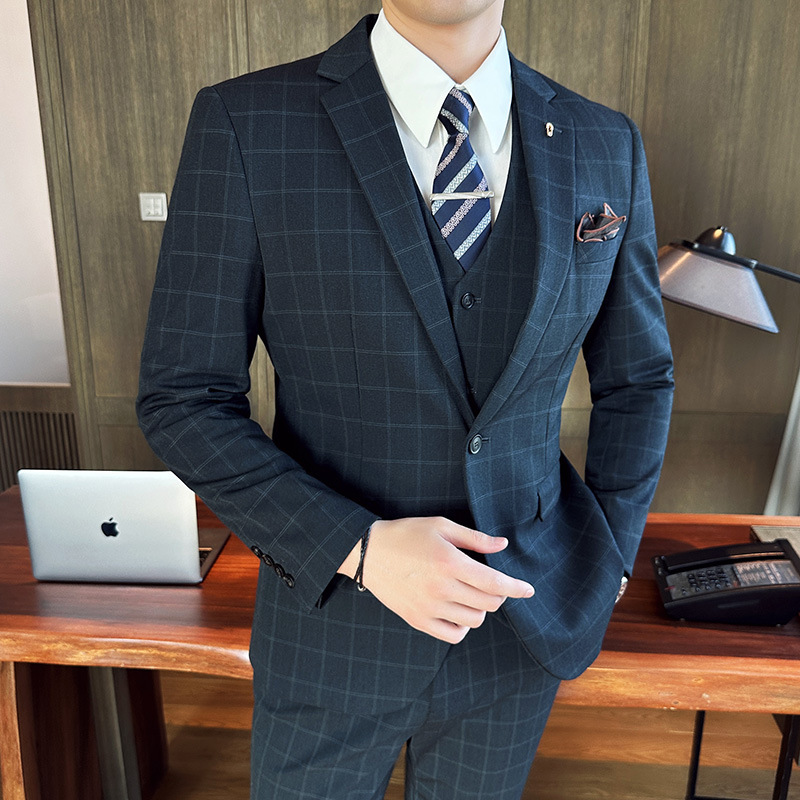 新型正規品男性スーツ3点セット修身スーツスーツ男性ビジネス四季ビジネス正装卸売り