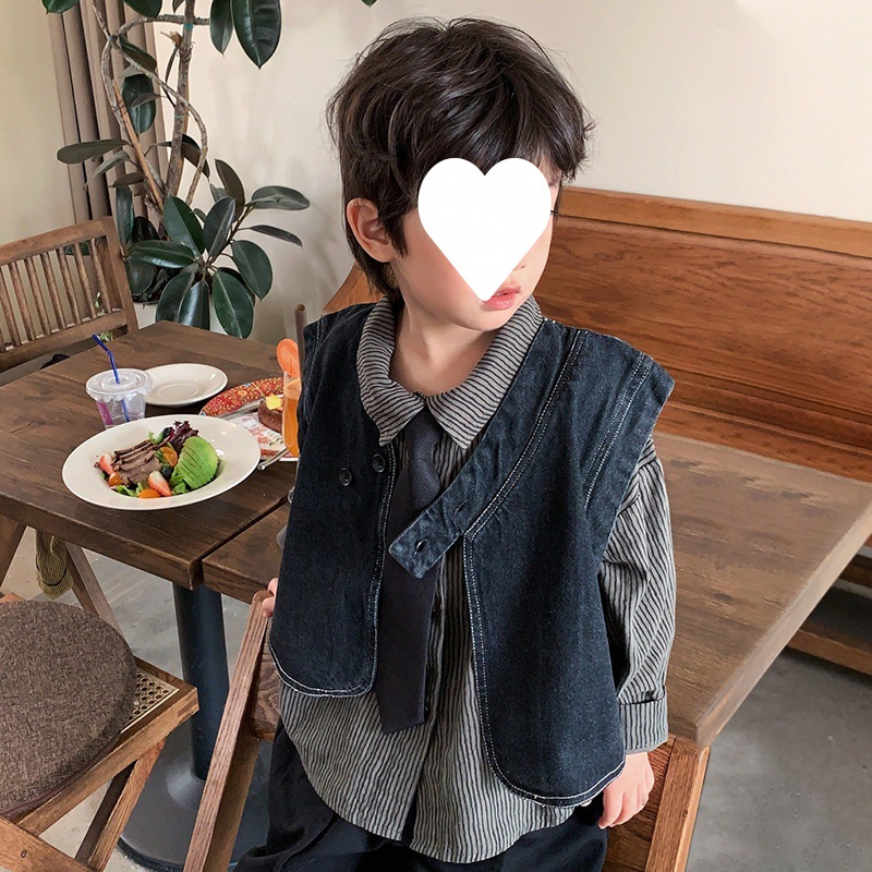 子供服2023新型秋服セット男児デニムシャツ馬甲中小童シンプルカジュアルショルダー2点セット