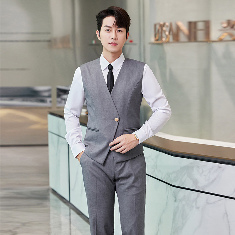 夏の新型韓国版気質男性ベストセットホテルのフロントktvサービスマンのミルクティーカフェの工装