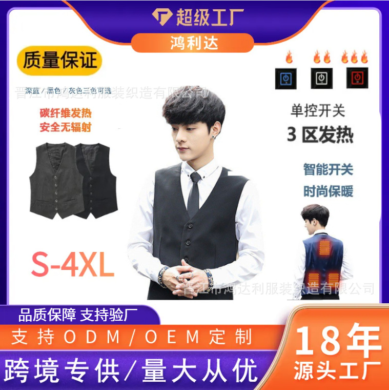 冬の新型男性知能発熱馬甲ビジネスカジュアルスーツ馬クリップUSB充電加熱ベスト卸売り