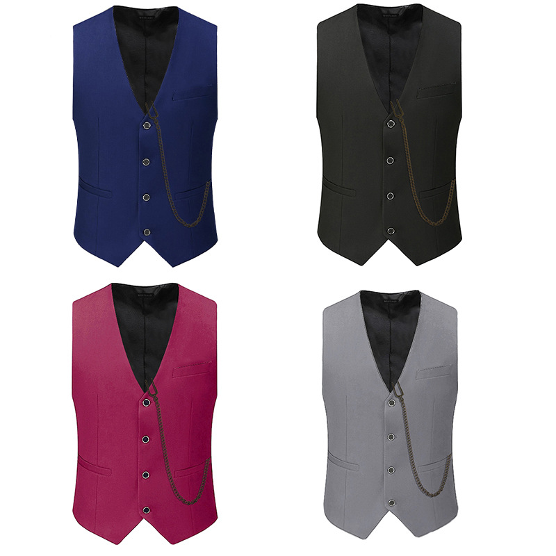2024春の新型アマゾン男性スーツベスト結婚式パーティー襟付きチェーンとベスト