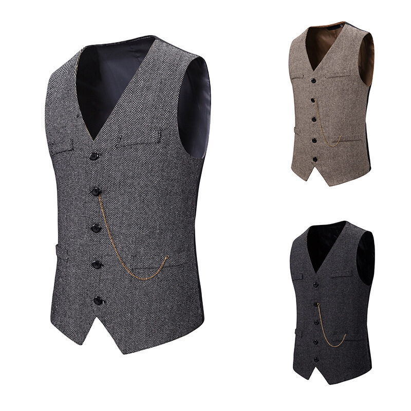 国境を越えた貿易 2025 メンズヘリンボーンシングルブレストベストスタイルメンズスーツベスト AliExpress