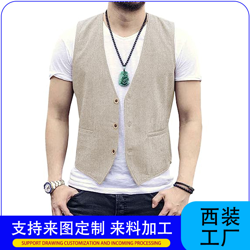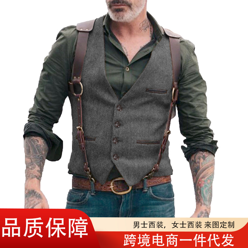 国境を越えた2023アマゾン男性中世復古馬甲男性ヨーロッパコードカジュアル単列ボタンvネックベスト馬クリップ