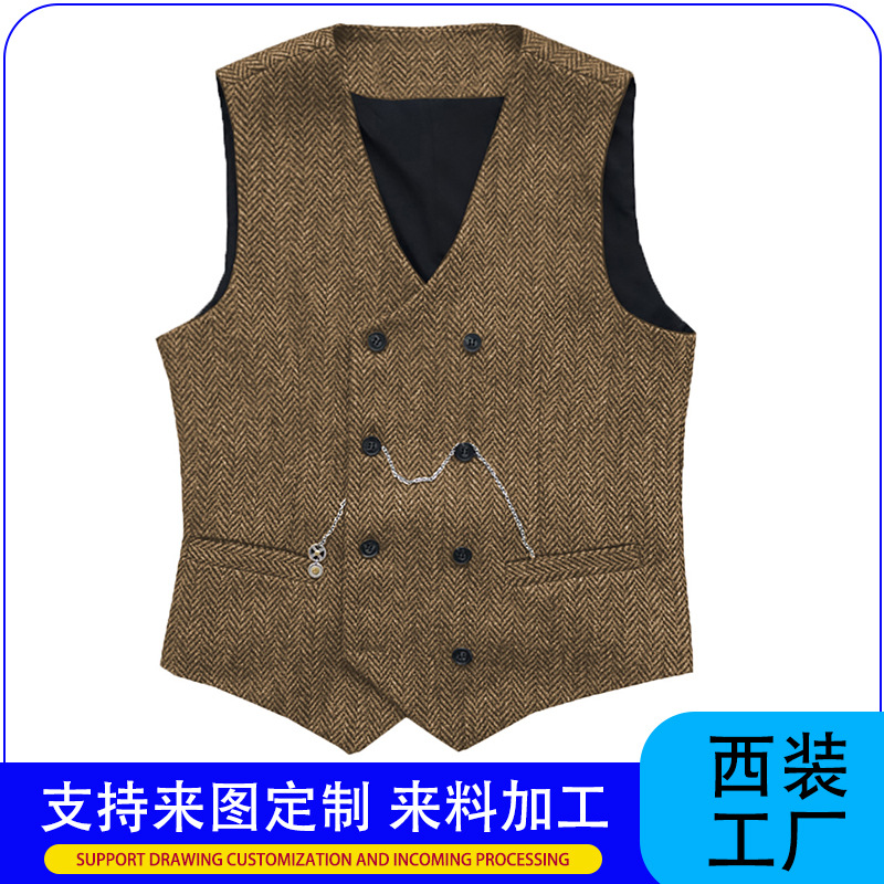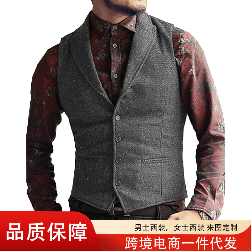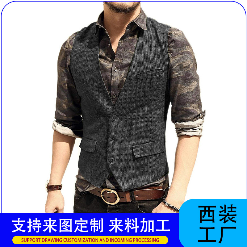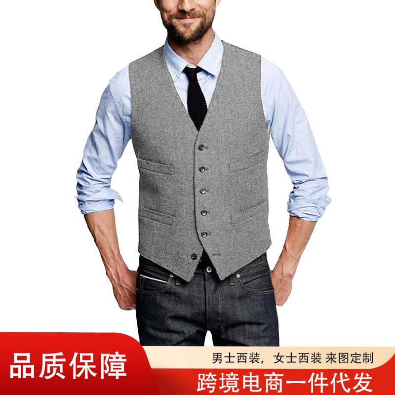 貿易メンズベストヘリンボーン柄メンズスーツベストクロスボーダーホットスタイルメンズベストカジュアル無地