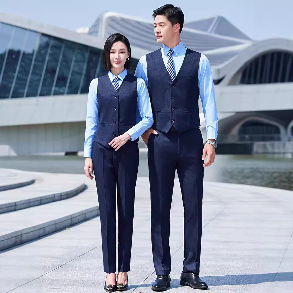 男女同型職業正装ホテルレストランktv銀行サービスマン作業服クラブ馬甲刺繍ロゴ