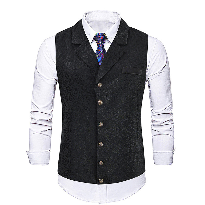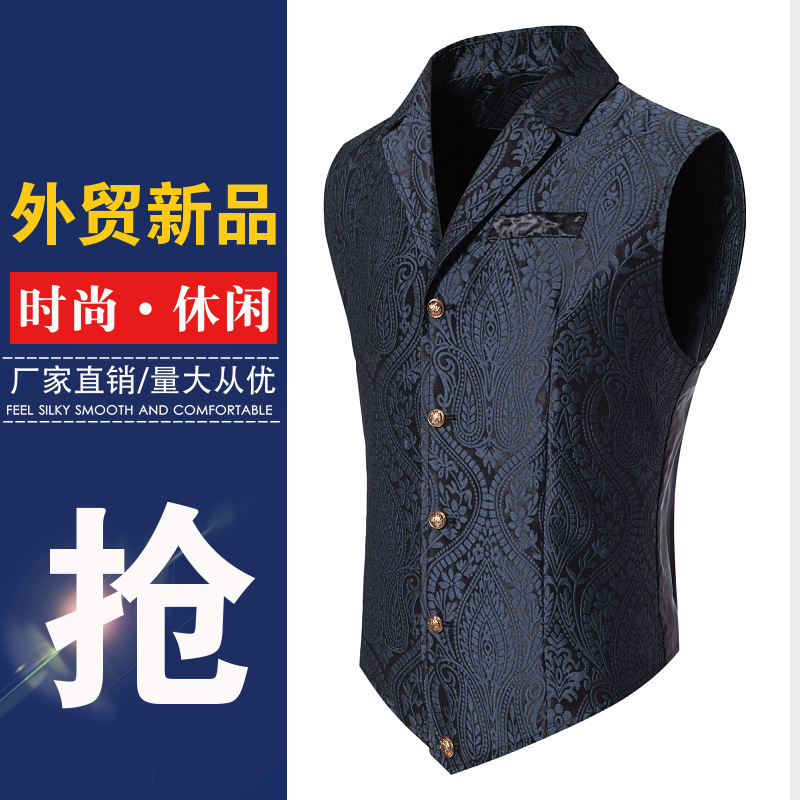 ヨーロッパサイズのメンズスーツベストメンズカジュアルラペルベストクロスボーダーシングルブレストジャカードスリムホリデードレス