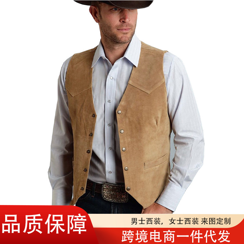 クロスボーダー選択メンズスーツベストメタルバックルスエードベストビジネスレギュラースリムフィットワンピースドロップシッピングベスト