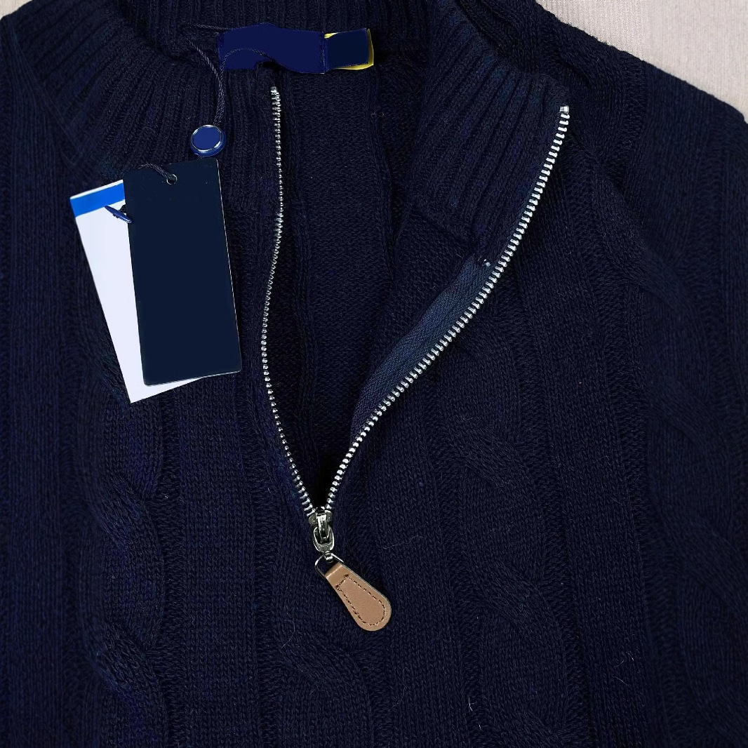 実拍RLラフ小馬標セーター女性刺繍ニット男秋冬立襟麻花カップル半ファスナー
