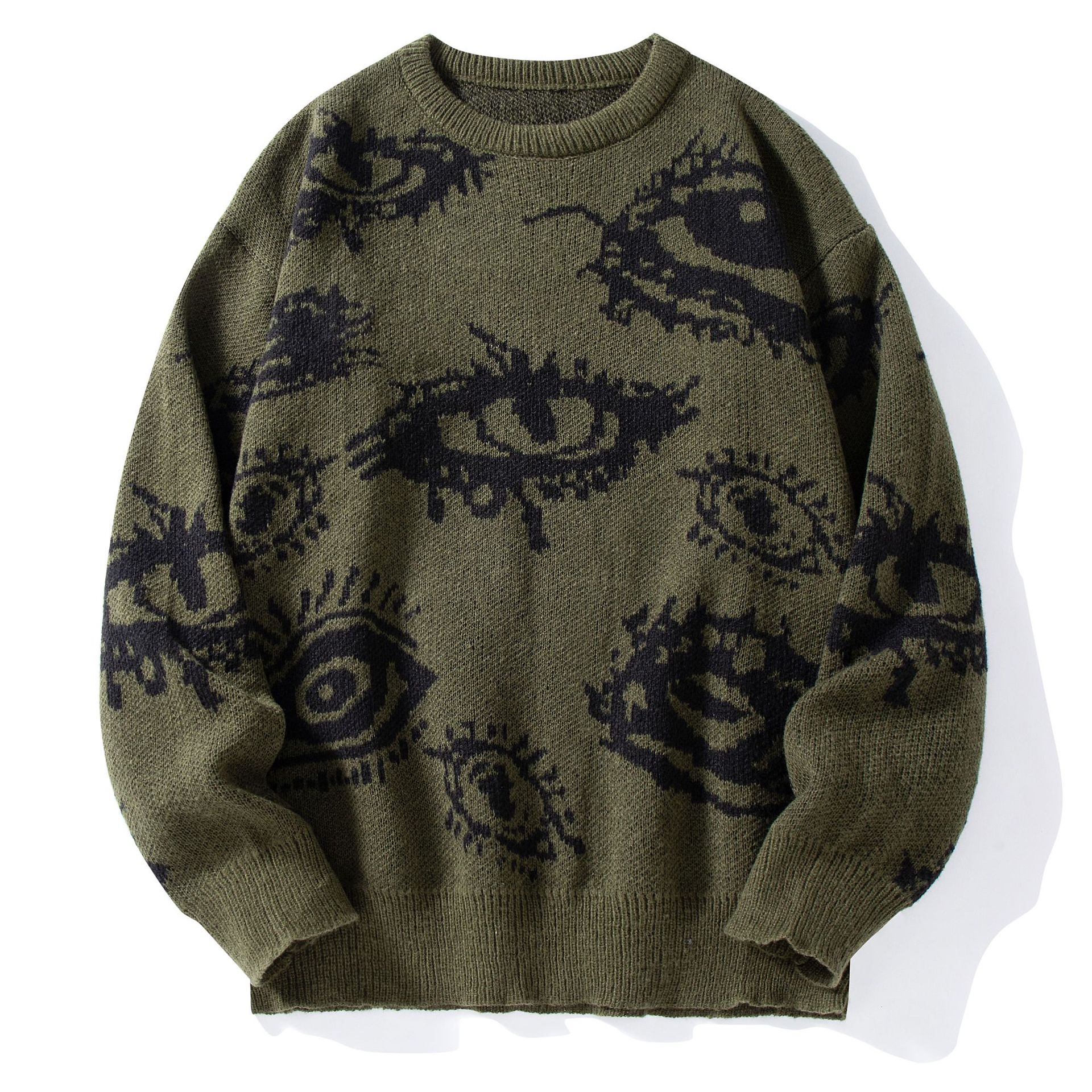 欧米の対外貿易の丸首の長袖のゆったりしているセーターのニットのジャカードの目の図案の個性的な保温の代行