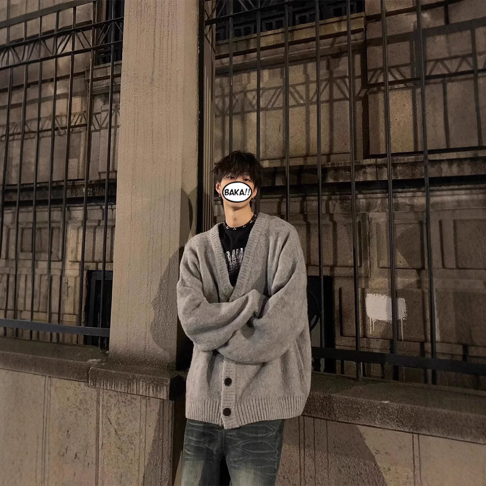2024春と秋の新型ニットカーディガンコート男の怠惰な風の高級感春秋は韓国系vネックセーターを着ている