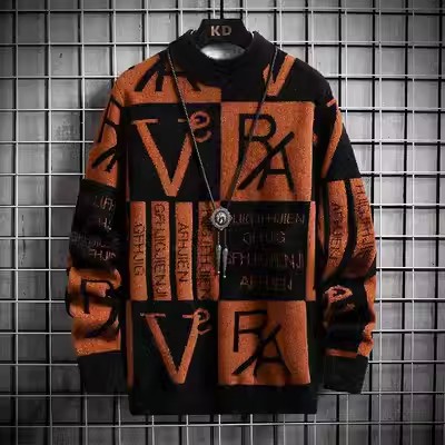 MYQ馬海毛プルオーバー丸首セーター男性冬ゆるい暖かい上着韓国版トレンドプリントニット