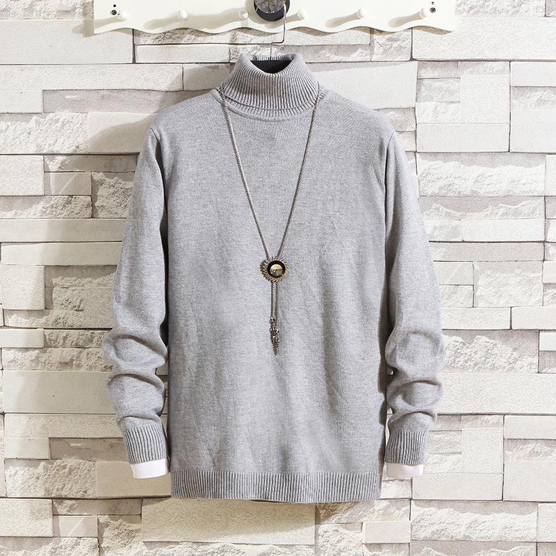 秋と冬のタートルネックラペルメンズプルオーバーボトリングシャツカジュアルビジネスセータールーズファッション無地長袖セーター